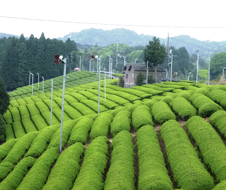 日本茶800年の歴史を支えてきた、宇治茶の主産地である南山城村。特に日本茶のトップブランドである「宇治茶」のうち、京都府内生産量の約2割を生産しています。村域の約4分の3が山林で占められ、平地が少ない南山城村では、その独特な地形を利用して、茶園は急峻な山間部や起伏に富んだ丘陵につくられています。寒暖差のある気候や木津川の川霧、土壌条件も茶葉の栽培に適していることから、薫り高く良質な高級茶が日々育まれているのです。